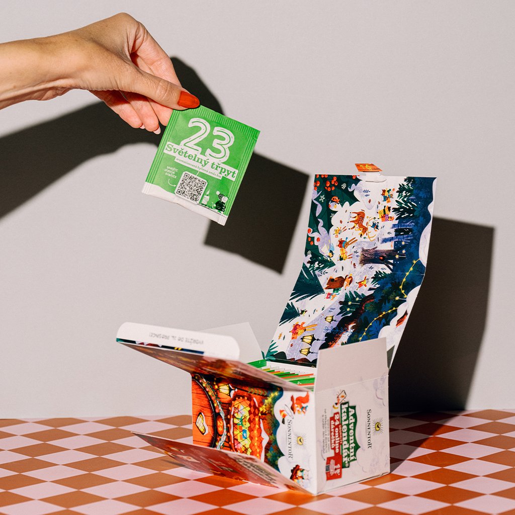 V kalendáři najdete perníčkové, skořicové nebo ovocné chutě. Každá se ale hodí k vašemu cukroví, žádný strach! Navíc je doplněn o nové básničky na čajovém přebalu, videorecepty, digitální hry i soutěže a odměny. Krabička má i o dvě klopy víc: v regálu zabere stejný prostor, jako doposud, zato po jejím rozložení objevíte ještě víc okouzlujících vánočních ilustrací.