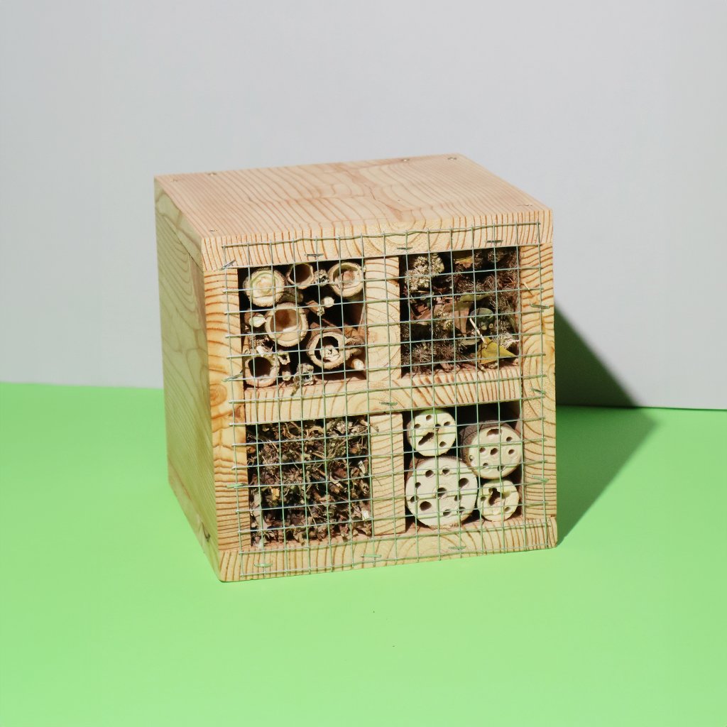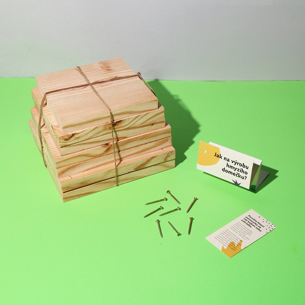 Nákupem podpoříte zaměstnance integrační dílny, kteří se vypořádávají s duševním onemocněním a každý dílek hmyzího domku ručně vyrábějí.