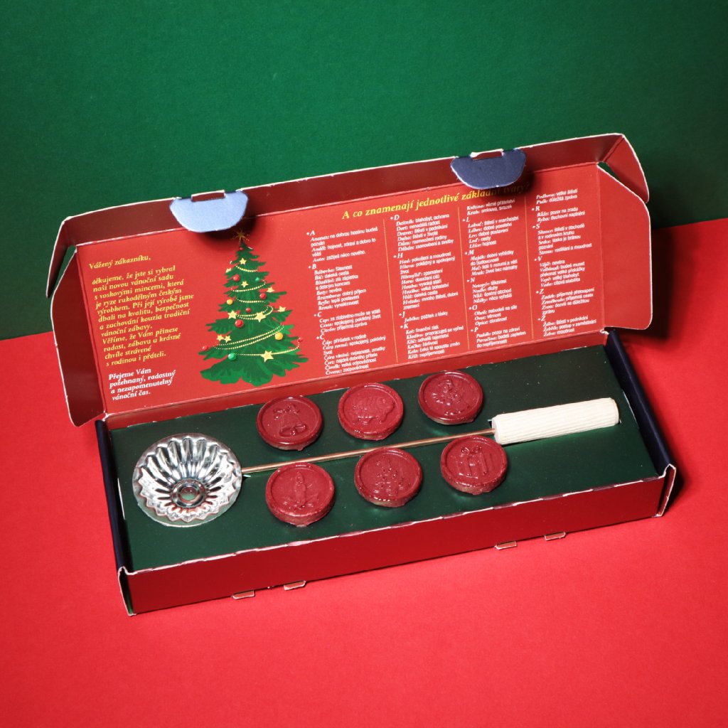 Součástí balení jsou voskové mince k odlévání, vyrobené ze speciálního vosku, který neobsahuje parafín. Díky přírodním silicím vám navíc krásně provoní Štědrý večer. Vosk je zcela netoxický, snadno se roztaví nad obyčejnou svíčkou – a pak už je to jen na vaší fantazii, jaké tvary a symboly v odlitcích uvidíte.