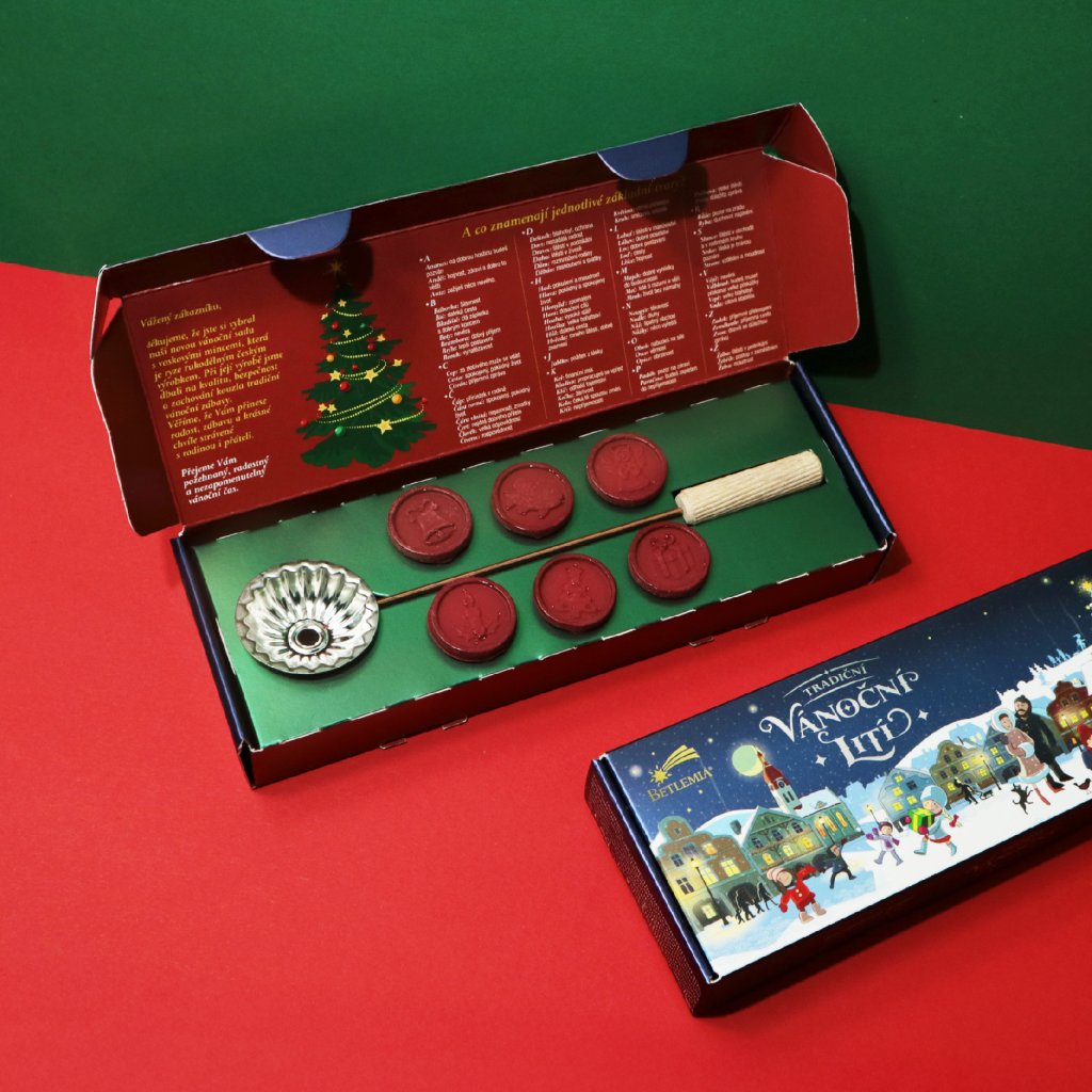 Tato sada pro tradiční vánoční lití vám umožní prožít tento jedinečný okamžik i dnes, v 21. století. Přináší napětí, fantazii, společnou radost i kouzlo staročeských Vánoc.