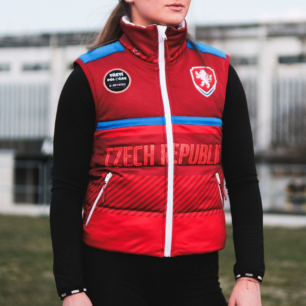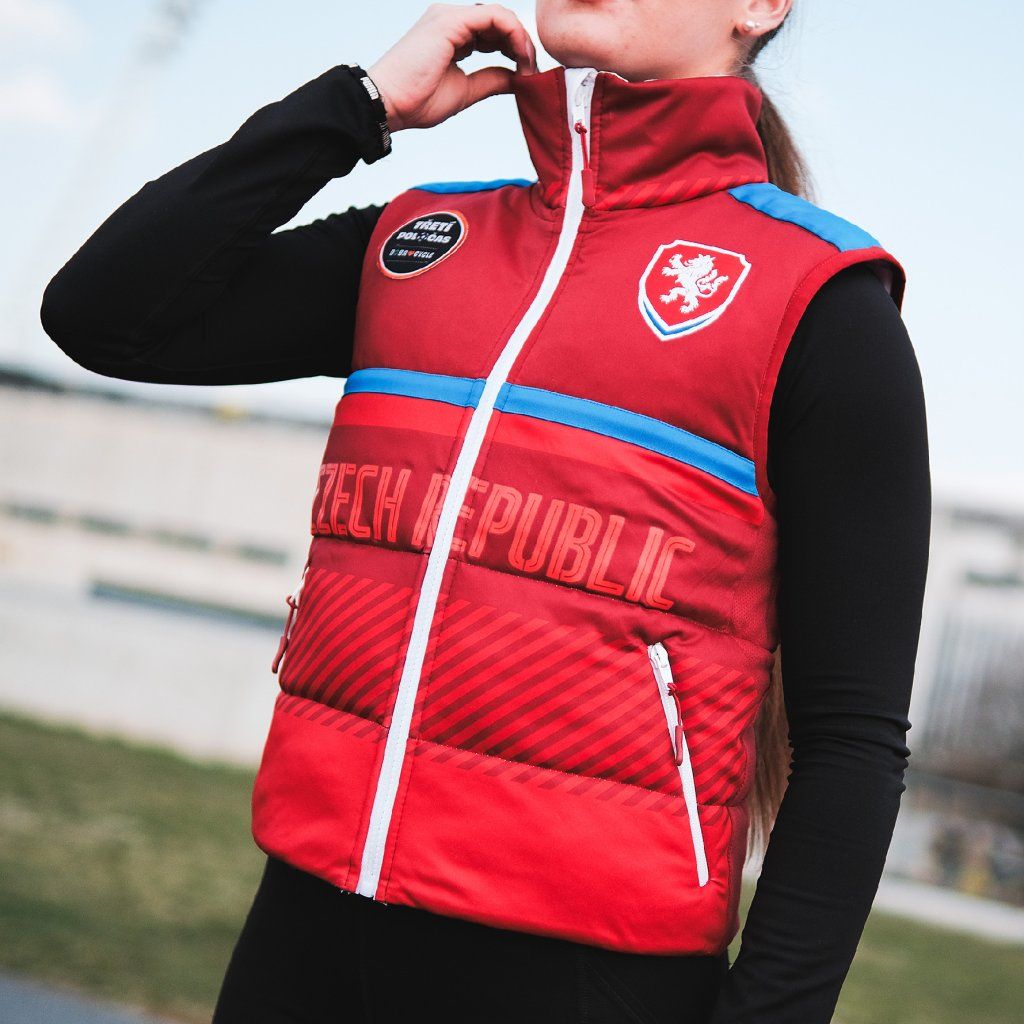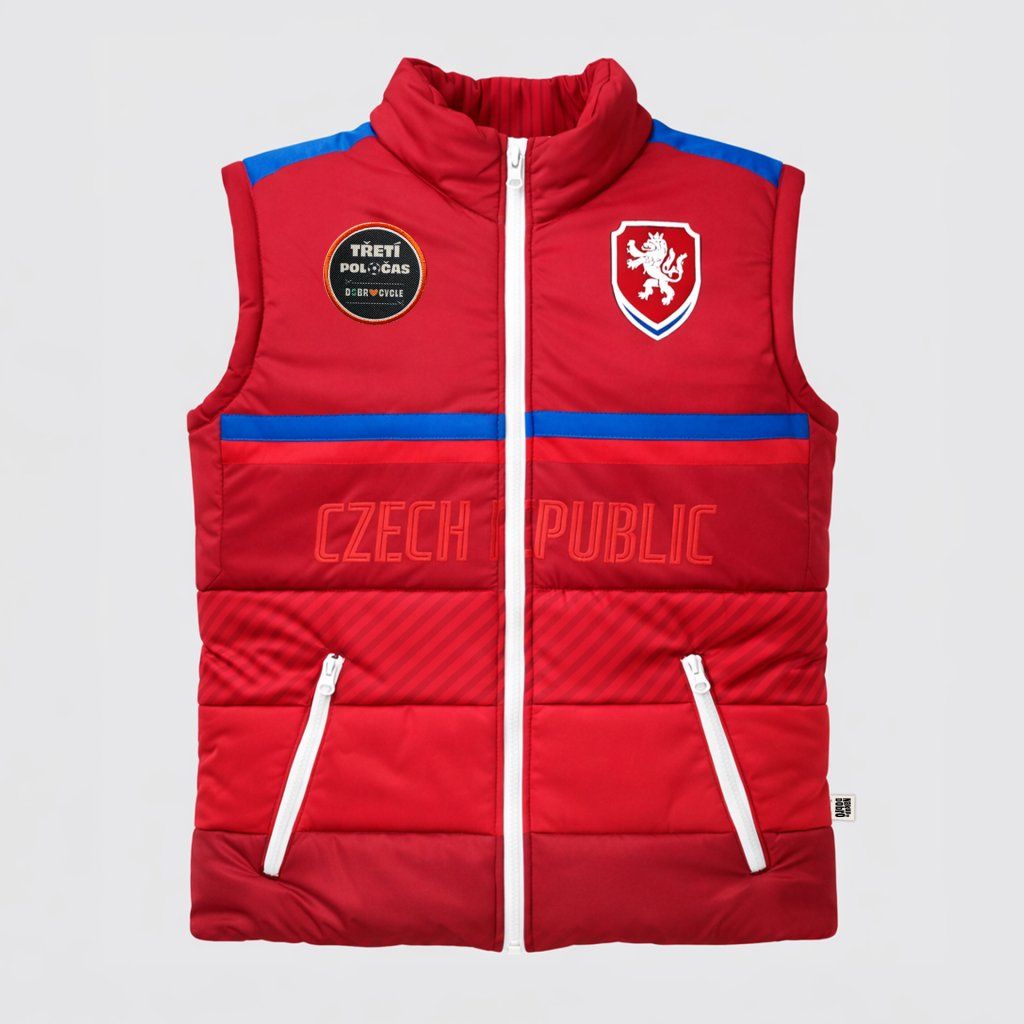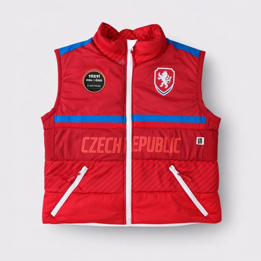 Tato vesta vznikla z dresu české reprezentace, který dostal novou roli mimo hřiště. Zachovává si původní logo, nápisy i typické modro-červené detaily, ale přichází v nové podobě pro každodenní nošení.